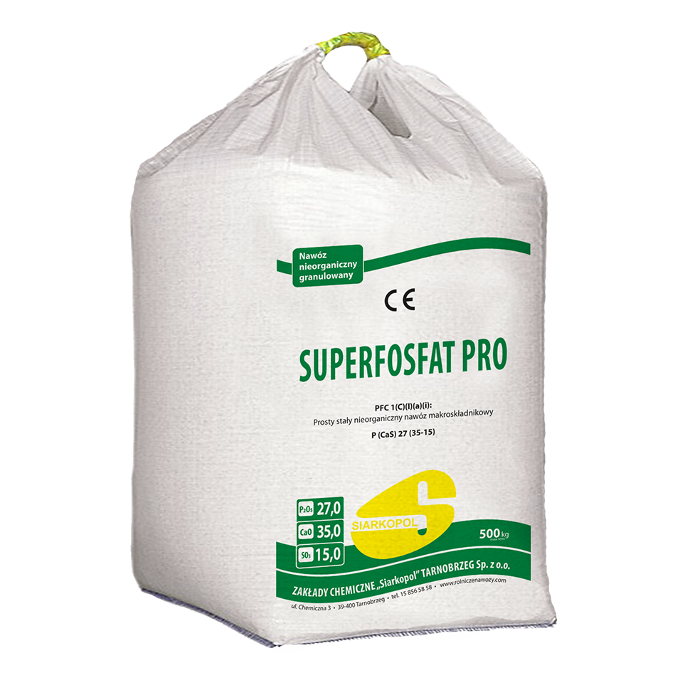 SUPERFOSFAT PRO - це фосфорне мінеральне добриво. Підходить для використання під всі рослини польових культур і на всіх типах ґрунтів. Дає хороші результати в удобренні як пасовищ, так і постійних плантацій. Це передпосівне добриво.