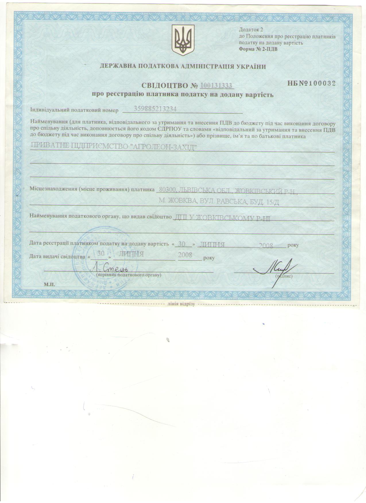 Свідоцтво про реєстрацію платника податку на додану вартість