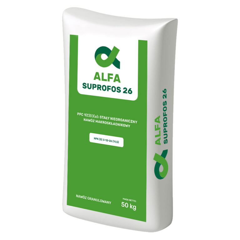 Alfa SUPROFOS 26 – це універсальне багатокомпонентне добриво, призначене для використання на всіх типах ґрунтів і під більшість сільськогосподарських культур, які потребують доброго забезпечення калієм. Найкращі результати досягаються при використанні добрива передпосівно, змішуючи його з ґрунтом на глибину 10–15 см. Його також можна використовувати поверхнево навесні, під час початку вегетації для озимих культур або багаторічних насаджень. На зелених угіддях одноразова доза добрива не повинна перевищувати 250 кг/га.