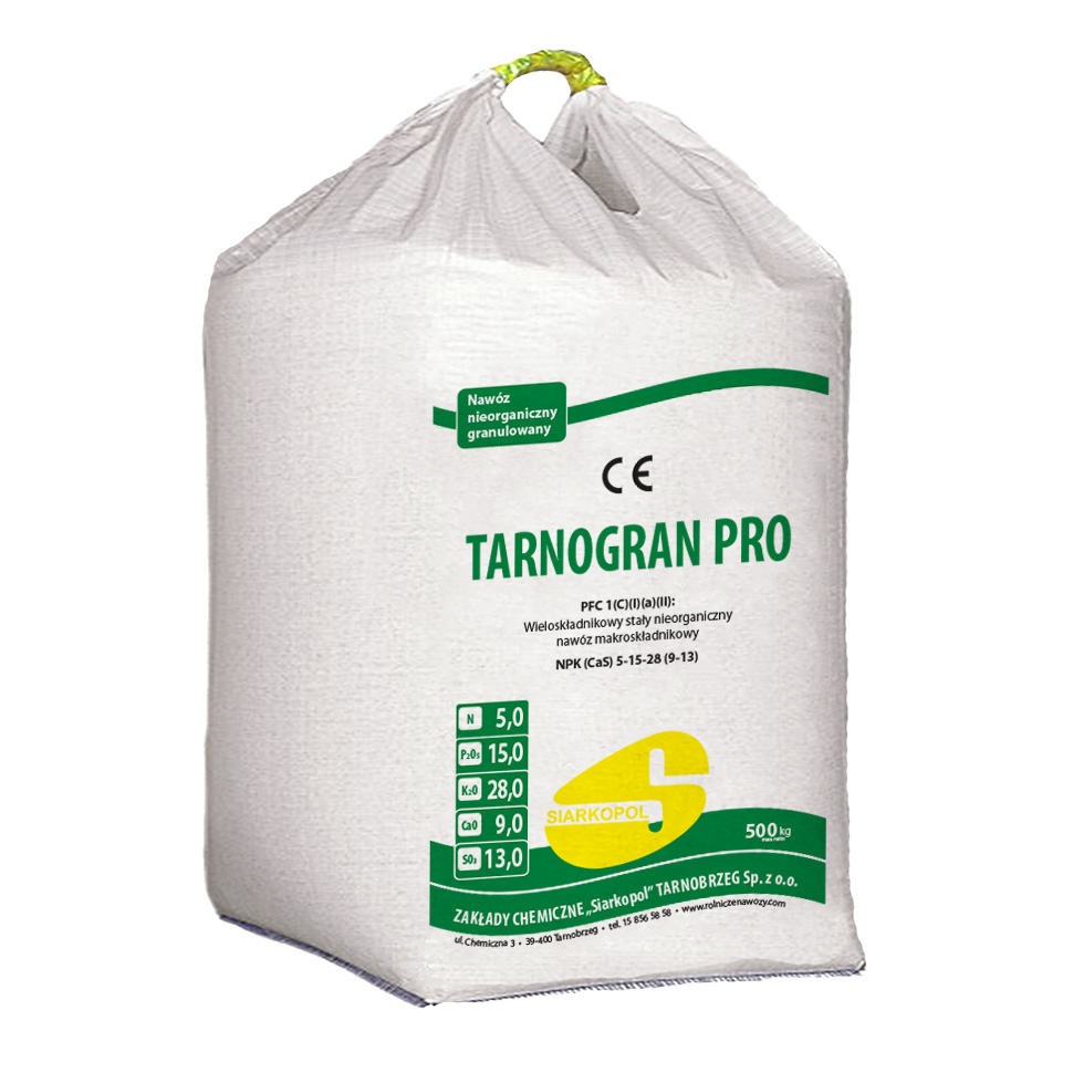 ТАРНОГРАН ПРО – універсальне передпосівне добриво, яке збагачує ґрунт азотом, фосфором, калієм, кальцієм та сіркою. Призначений переважно для кукурудзи, буряків, картоплі та плодових дерев. Добриво можна використовувати для підготовки ґрунту для вирощування овочевих і декоративних рослин під покрив і підгодівлю. Рекомендується також для ярих зернових, враховуючи більшу дозу азоту та фосфору під час весняного підживлення.